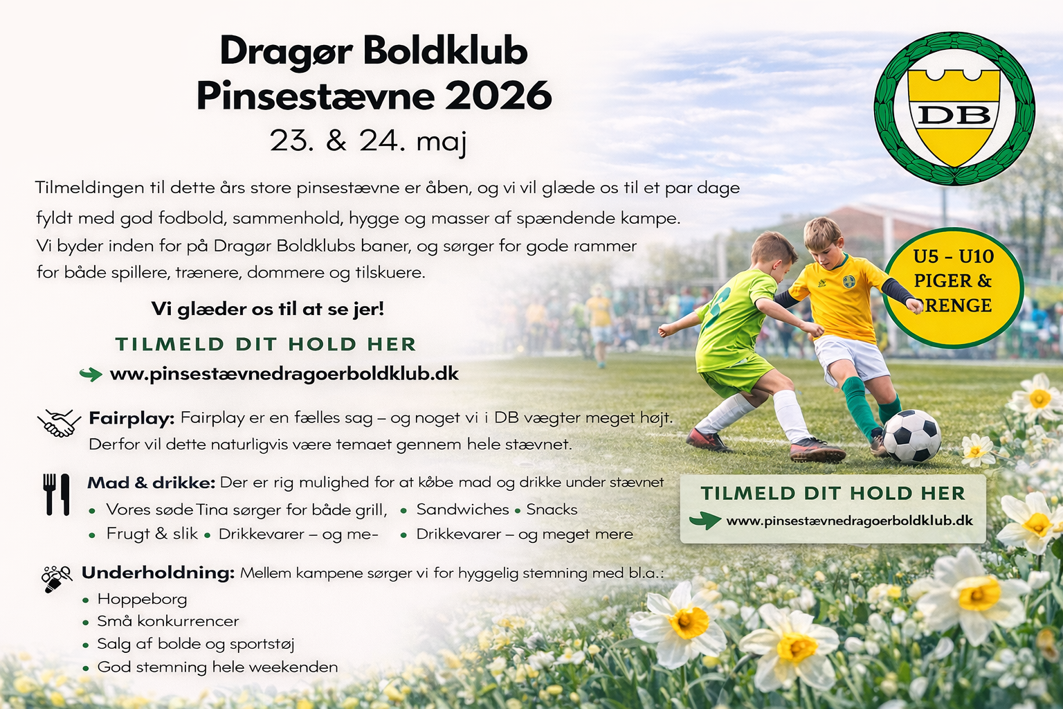 Tilmeld dit hold og læs mere på Dragør Boldklub Pinsestævne 2026